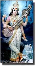Saraswati, the goddess of knowledge and learning, represents the free flow of wisdom and consciousness. She is the mother of the Vedas, and chants to her, called the 'Saraswati Vandana' often begin and end Vedic lessons. The goddess of wisdom, art and music, she is the daughter of Lord Shiva and Goddess Durga. It is believed that goddess Saraswati endows human beings with the powers of speech, wisdom and learning.